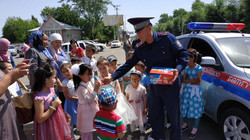 Таластагы, Чүйдөгү жана Оштогу тартип сакчылары балдарга белектерди тапшырышты