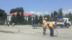 Талас шаарынын көчөлөрүндөгү аң-чуңкурлар жамалып жатат