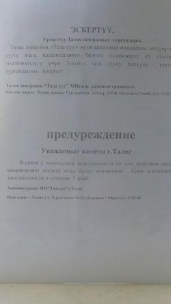 Талас шаарында карыздардын төлөнбөгөндүгүнө байланыштуу 3 күн таза суу берилбейт