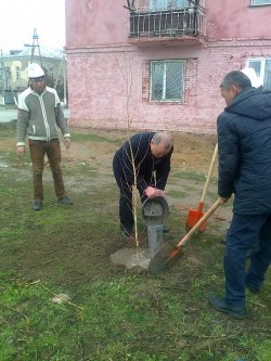 Талас шаарынын Ч.Айтматов атындагы борбордук аянтына ак кайыңдын көчөттөрү отургузулду (