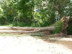 Фото - Таластагы катуу шамал чатырларды учуруп, бала бакчадагы терек кулады