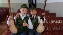 11 жаштагы Б.Садырбеков музыкалык бир нече аспаптарда ойноп, өнөрүн такшалтып жатат