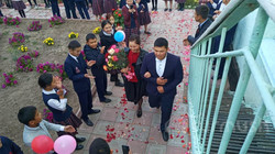 Таластагы мектепте мугалимдерди «кызыл килемде» тосуп алып куттукташты